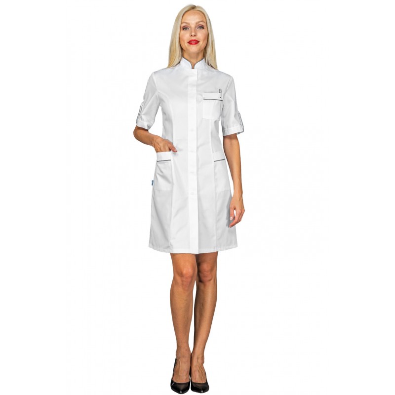 Kittel Venezia kurze Ärmel Weiß + Verzierung  Grau 65% Polyester - 35% Baumwolle ISACCO 007710M