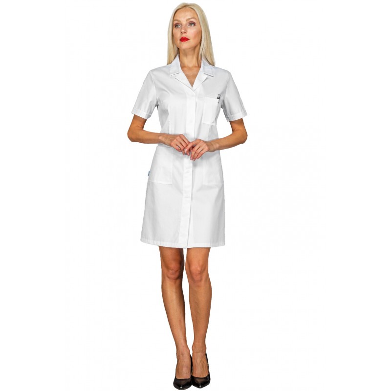 Non è sfiancato come in foto e le maniche sono molto più larghe. Premetto che sono di corporatura magra ma sono alta 1,75 e il camice mi arriva alle ginocchia, è troppo largo