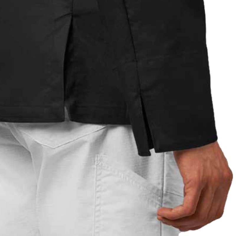 Innovativa giacca da cuoco con collo alla coreana, realizzata in twill di cotone e Lycra® T400®, con ottime proprietà elastiche e traspiranti.