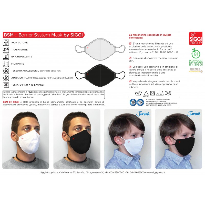 Mascherina Bambino filtrante lavabile Bianca Siggi Junior Visualizza ingrandito