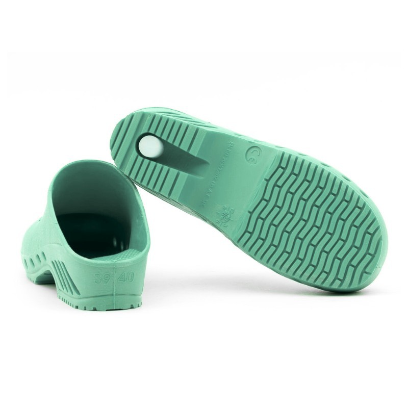 Tallone incorporato nella suola con alto potere di assorbimento di energia nella zona del tallone; inserto nel tacco in gomma antistatica (mantiene inalterata nel tempo la caratteristica di antistaticità, indipendentemente dal numero di lavaggi).